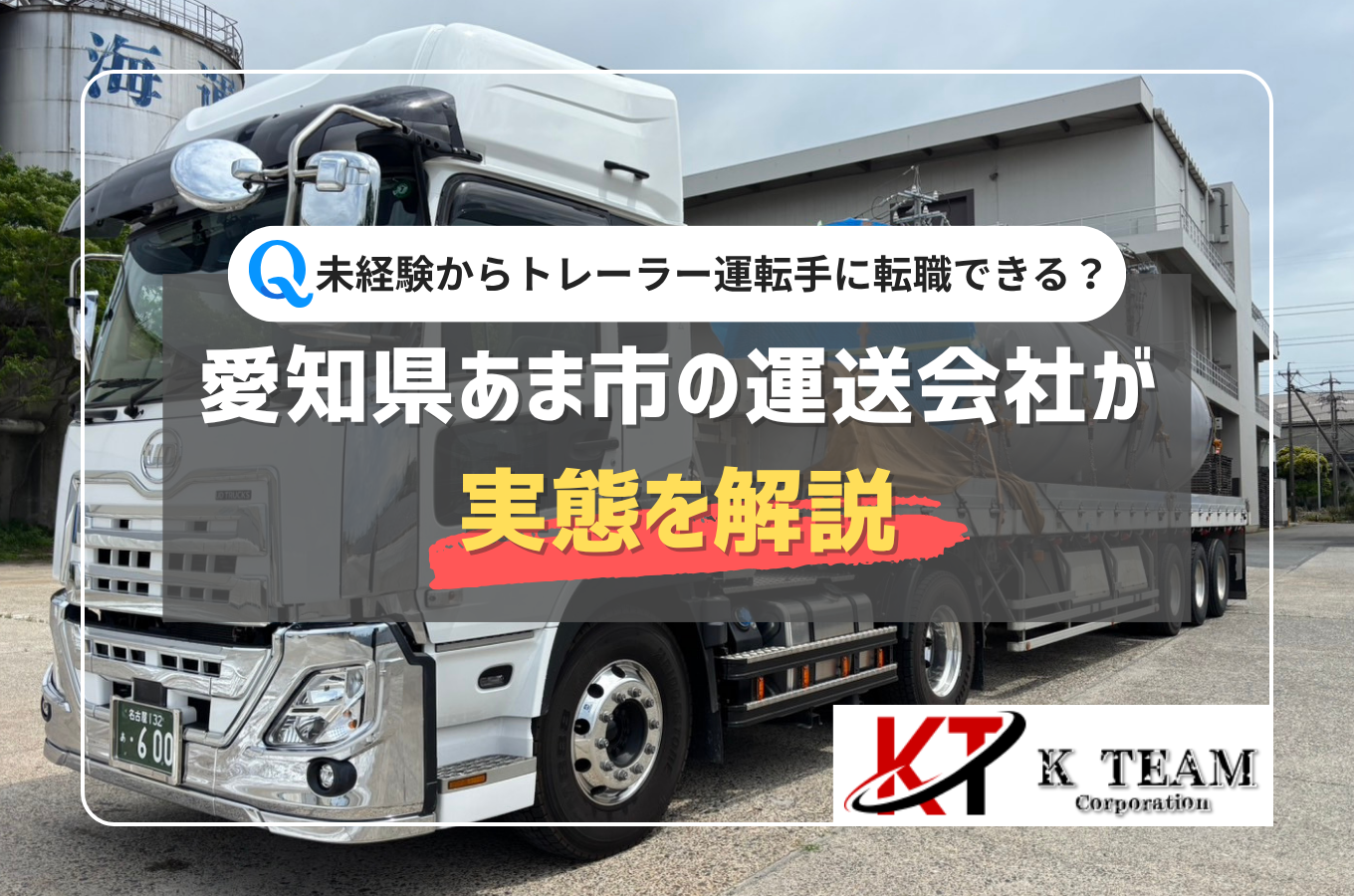 - 2026/03/19 運転手は性別問わず働… こんにちは。 株式会社K TEAMは、愛知県あま市に本社を構え、大型トラックや…